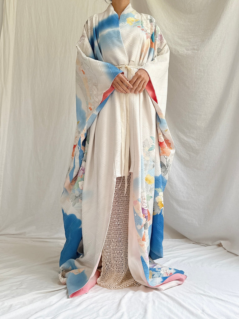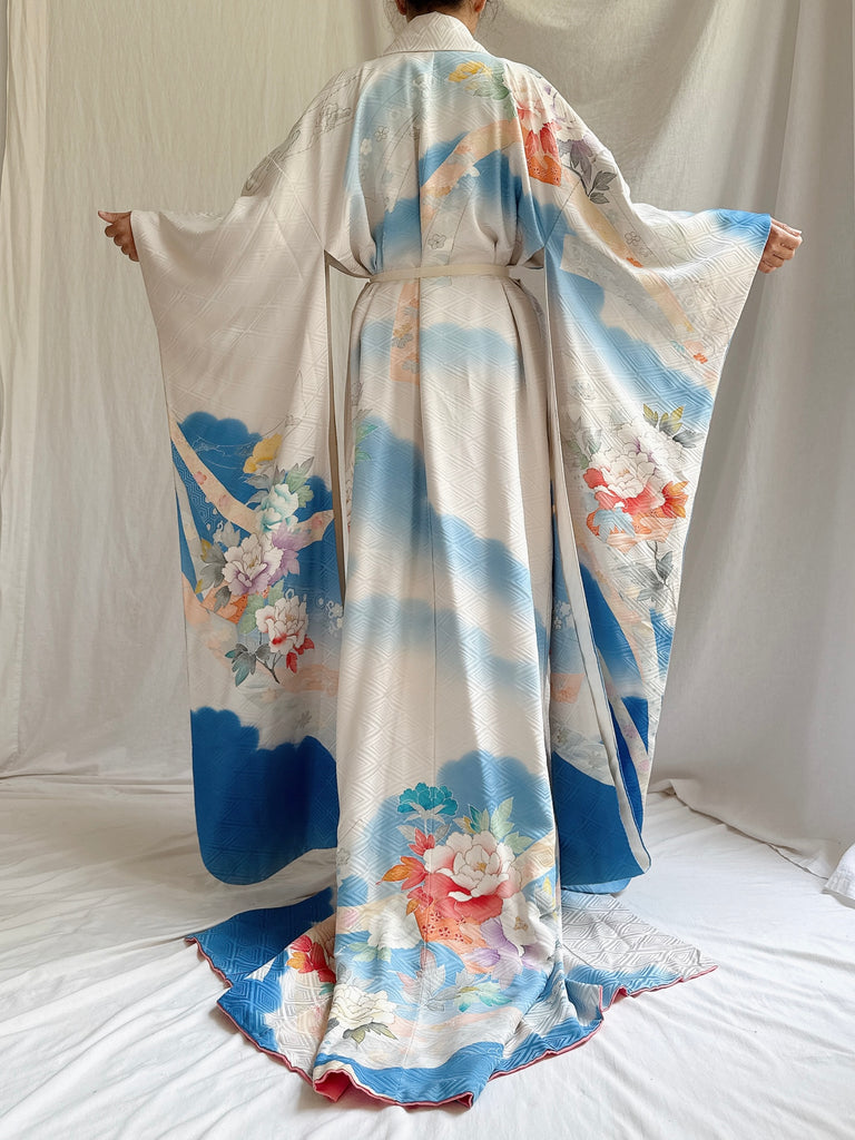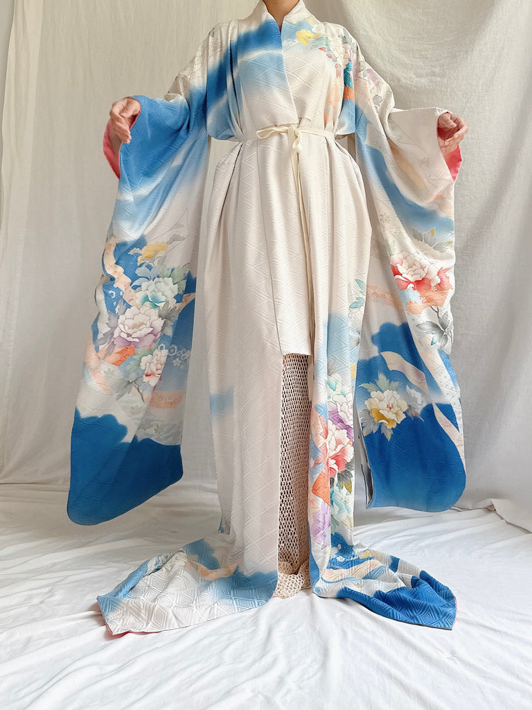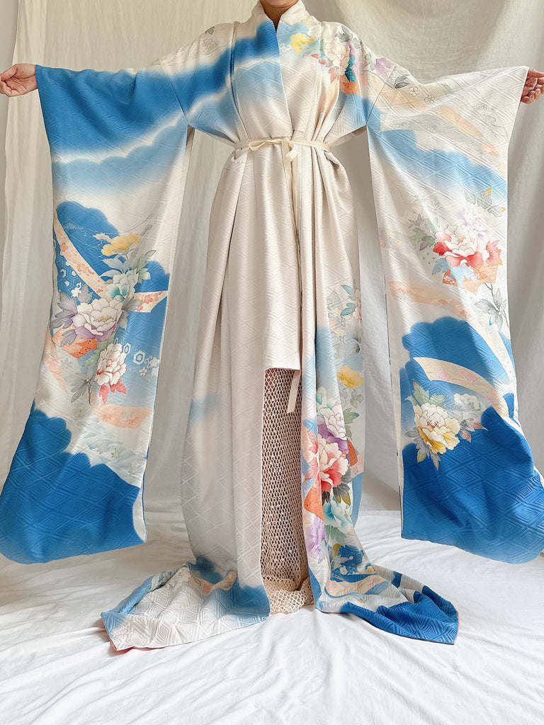 • DESCRIPTION: Vintage Silk Blue Kimono - OSFM