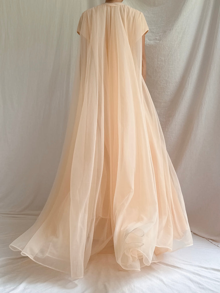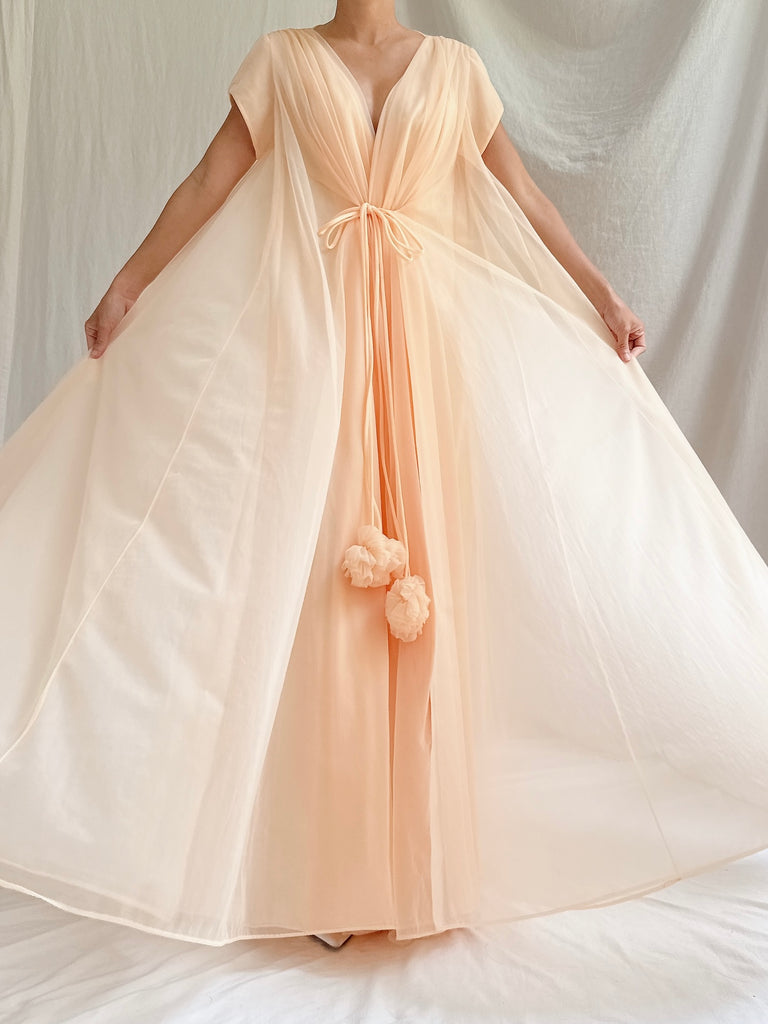 • DESCRIPTION: 1950s Apricot Tricot Dressing Robe - OSFM