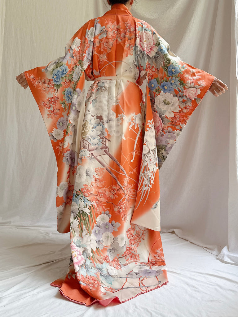 • DESCRIPTION: Vintage Orange Silk Kimono - OSFM