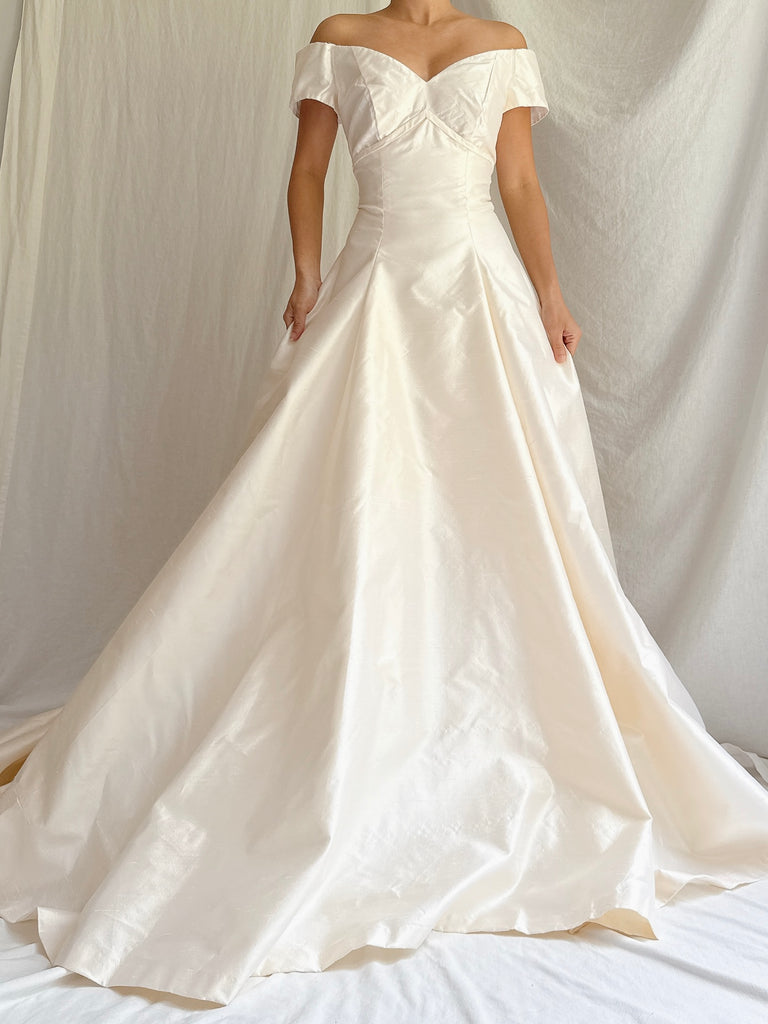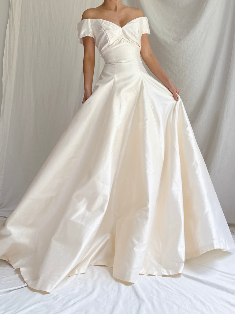 • DESCRIPTION: Vintage Silk Wide-Neck Gown - S
