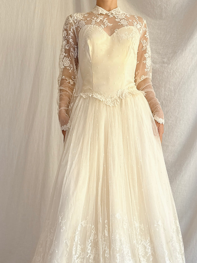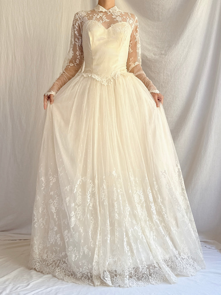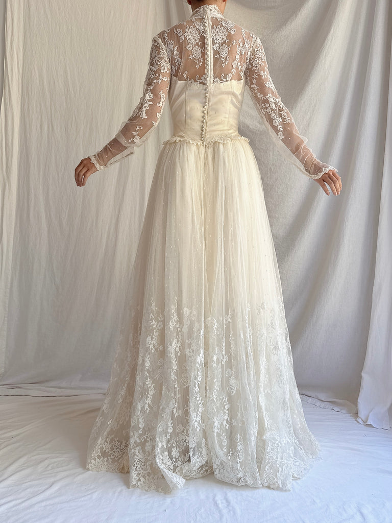 • DESCRIPTION: Vintage Silk Lace Gown - Size XS/S