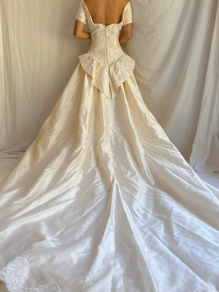 • DESCRIPTION: Vintage Wide Neck Lace Embellished Gown - S