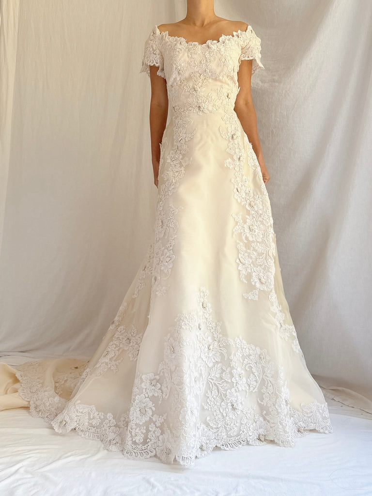 • DESCRIPTION: 1950s Silk Organza and Lace Gown - XS