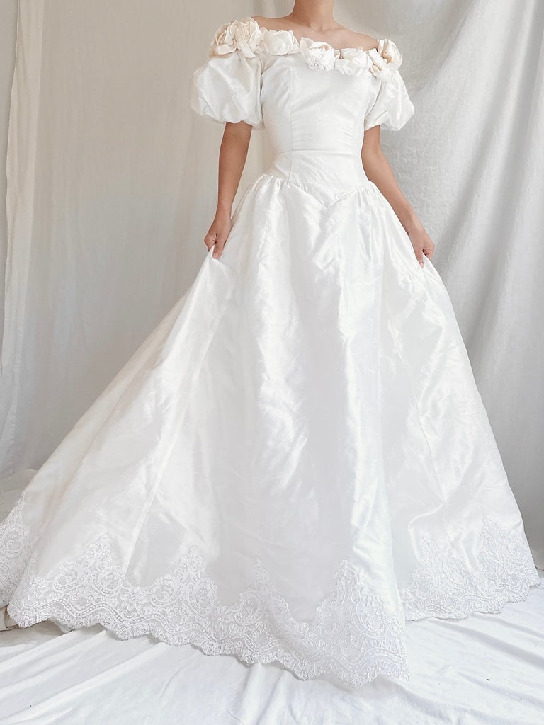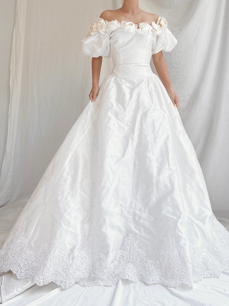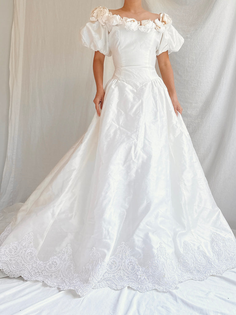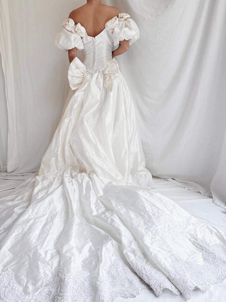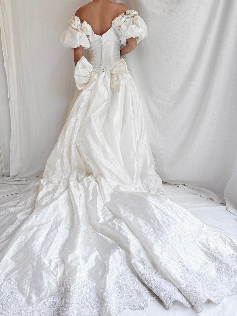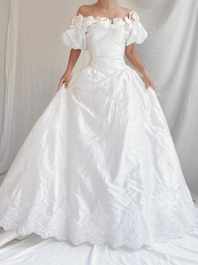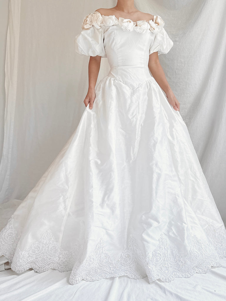 Vintage Raw Silk Off-the-Shoulder Gown - S