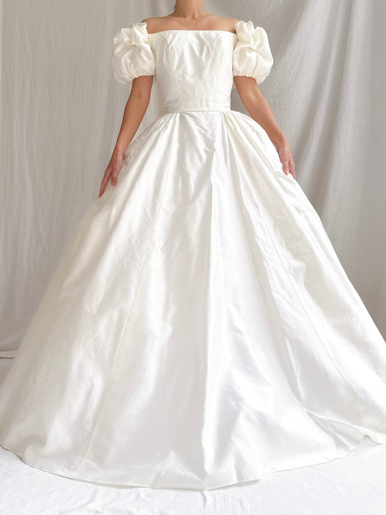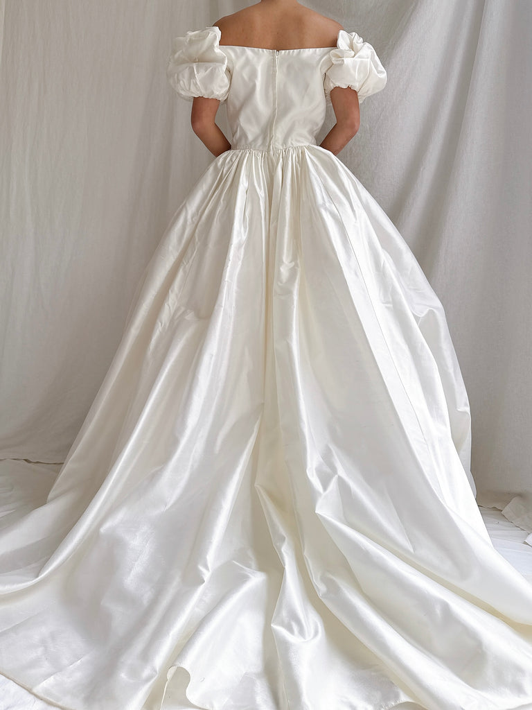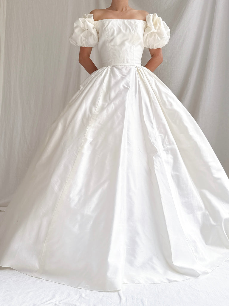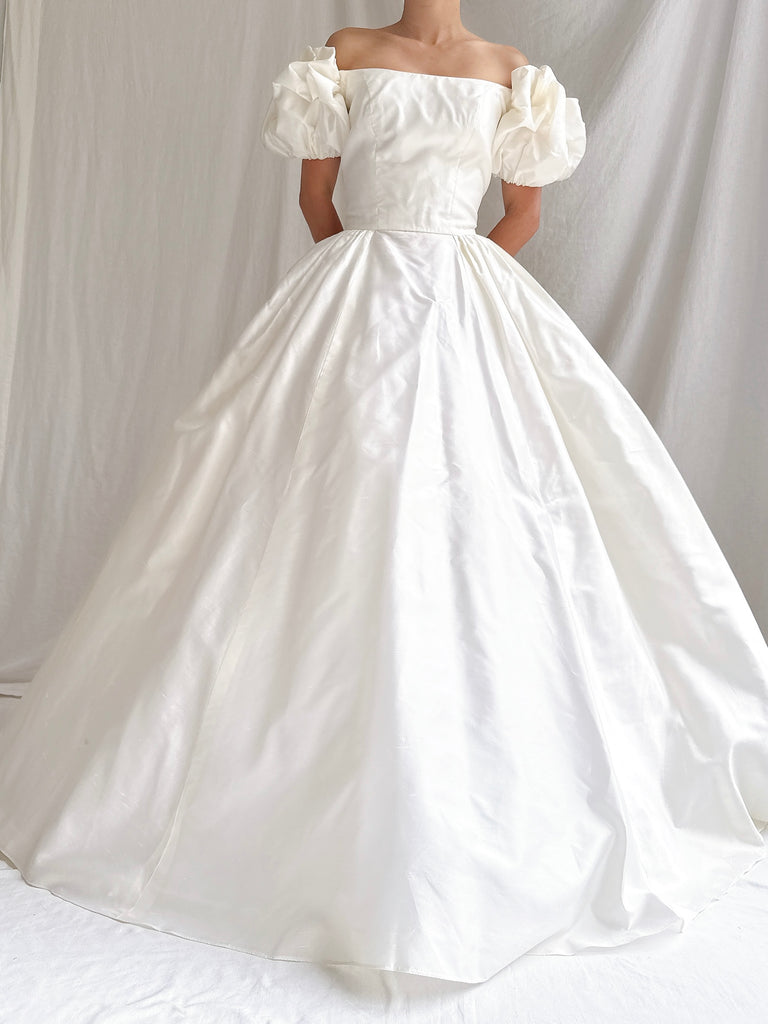 • DESCRIPTION: Vintage Silk Off-the-Shoulder Gown - XS