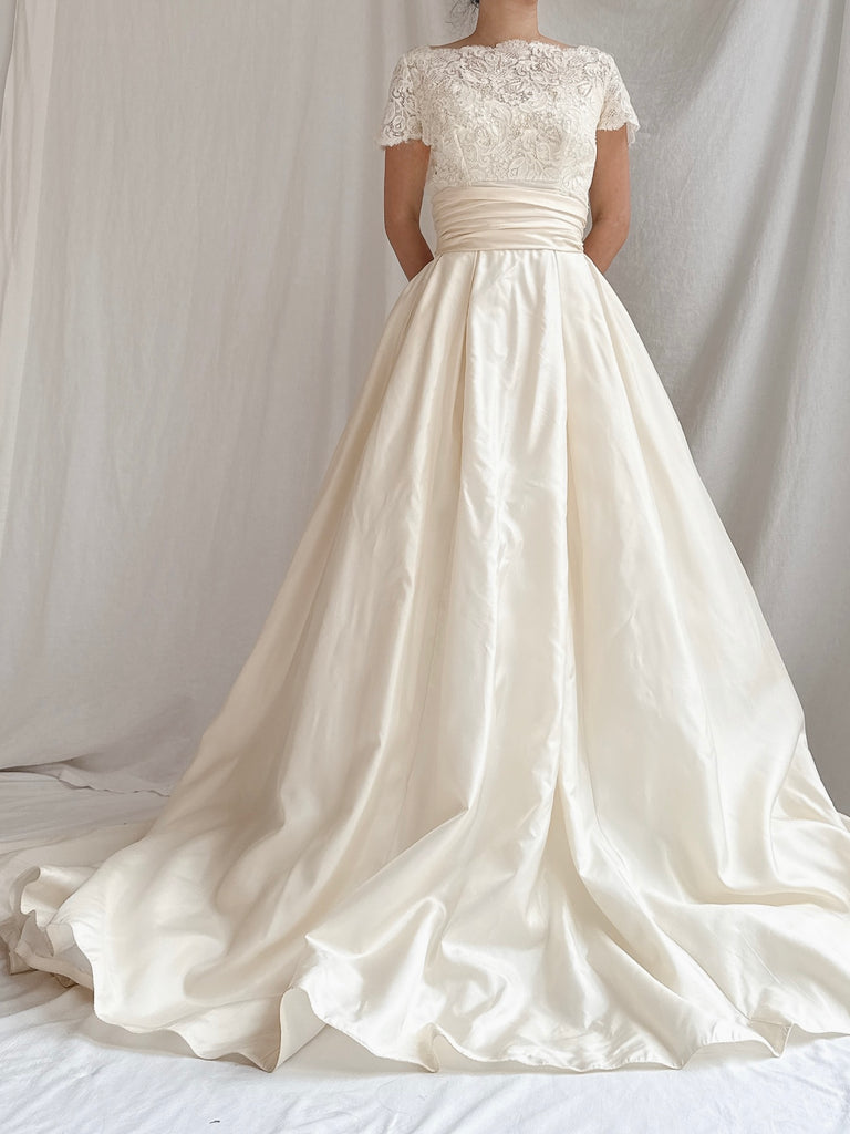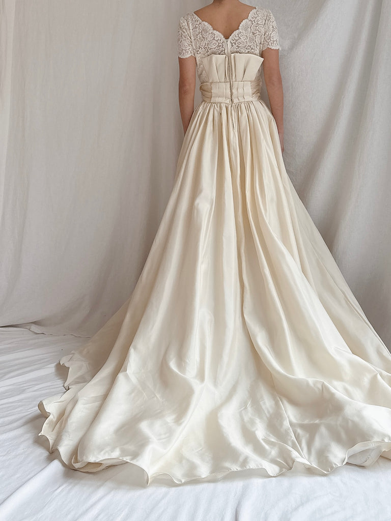 • DESCRIPTION: 1950s Silk and Lace Gown - S