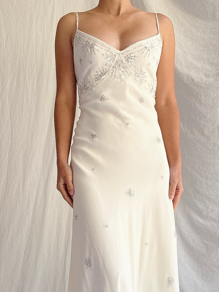 Vintage Bias Cut Silk Embellished Gown - Size S/M