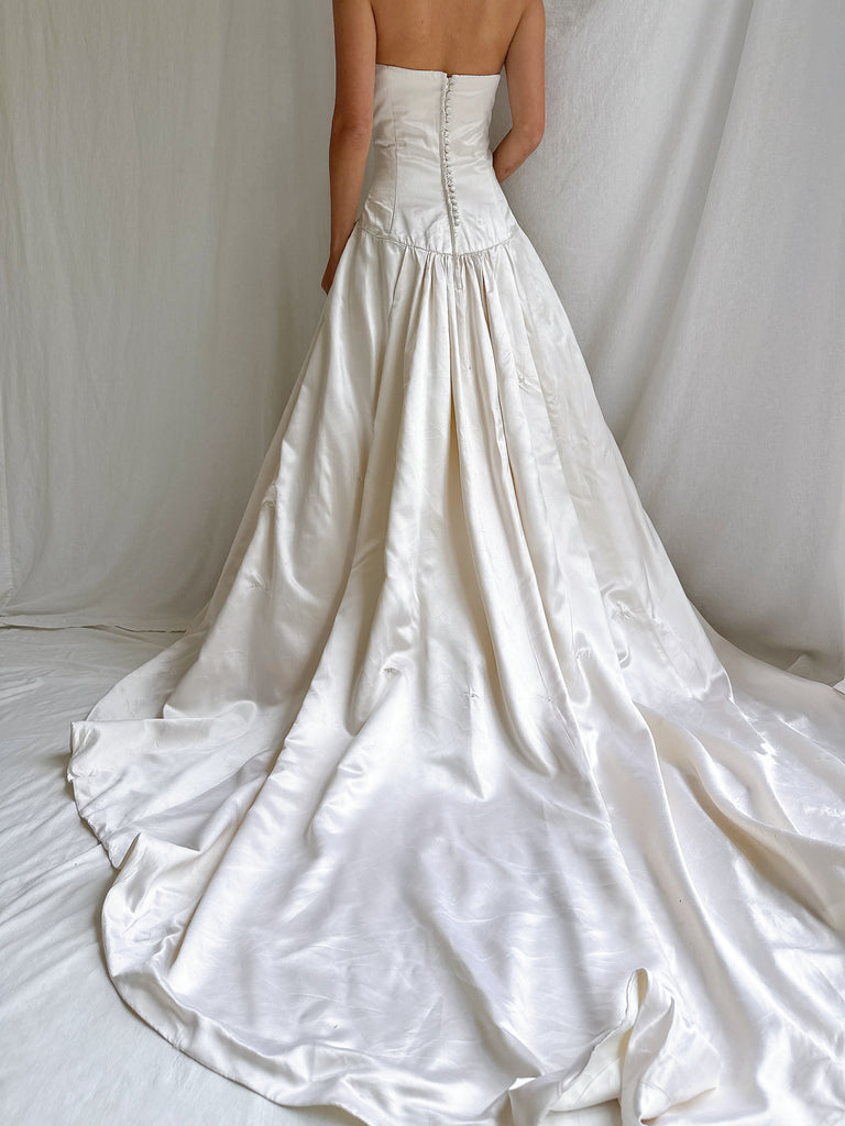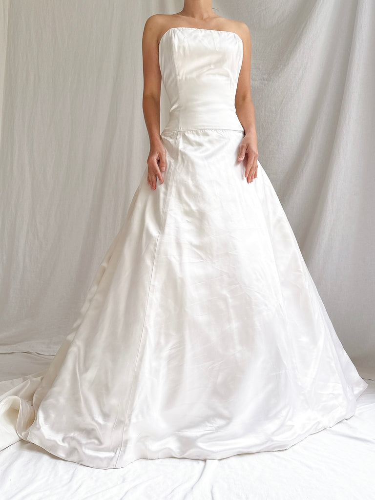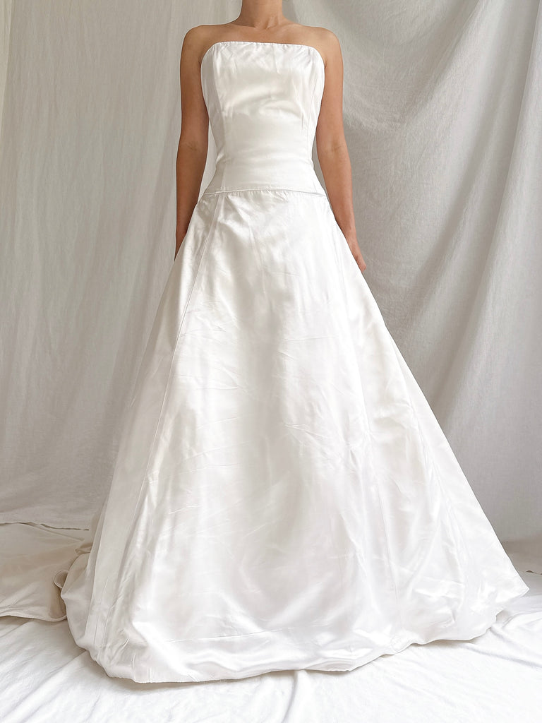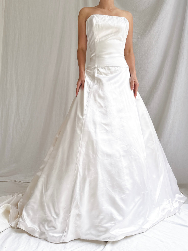 • DESCRIPTION: 1990s Amsale Silk Strapless Gown - M/6