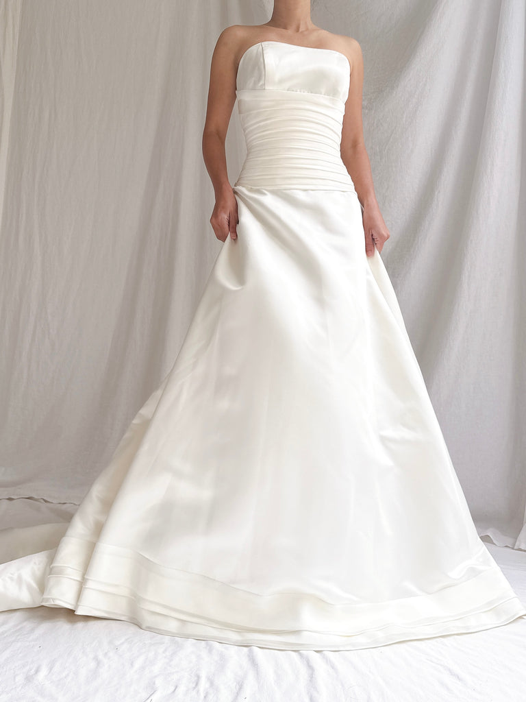 Vintage Satin Strapless Gown - M