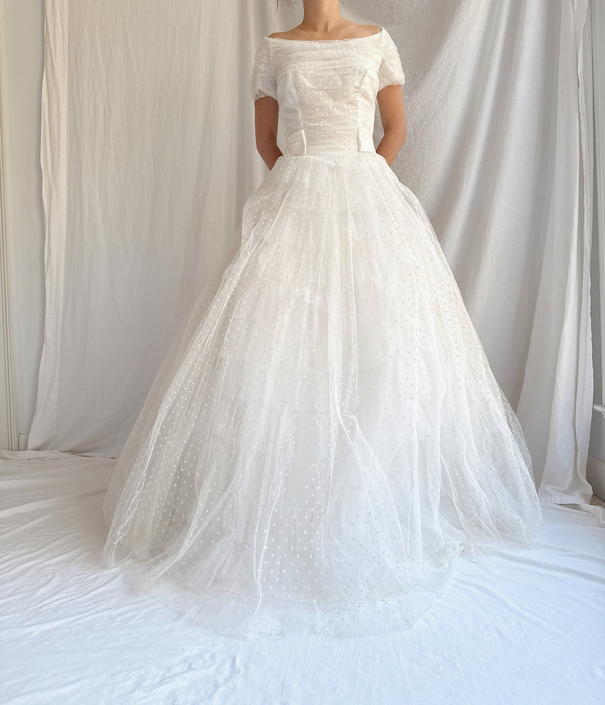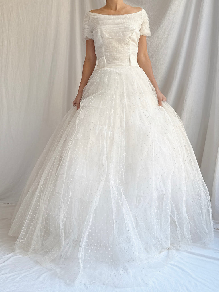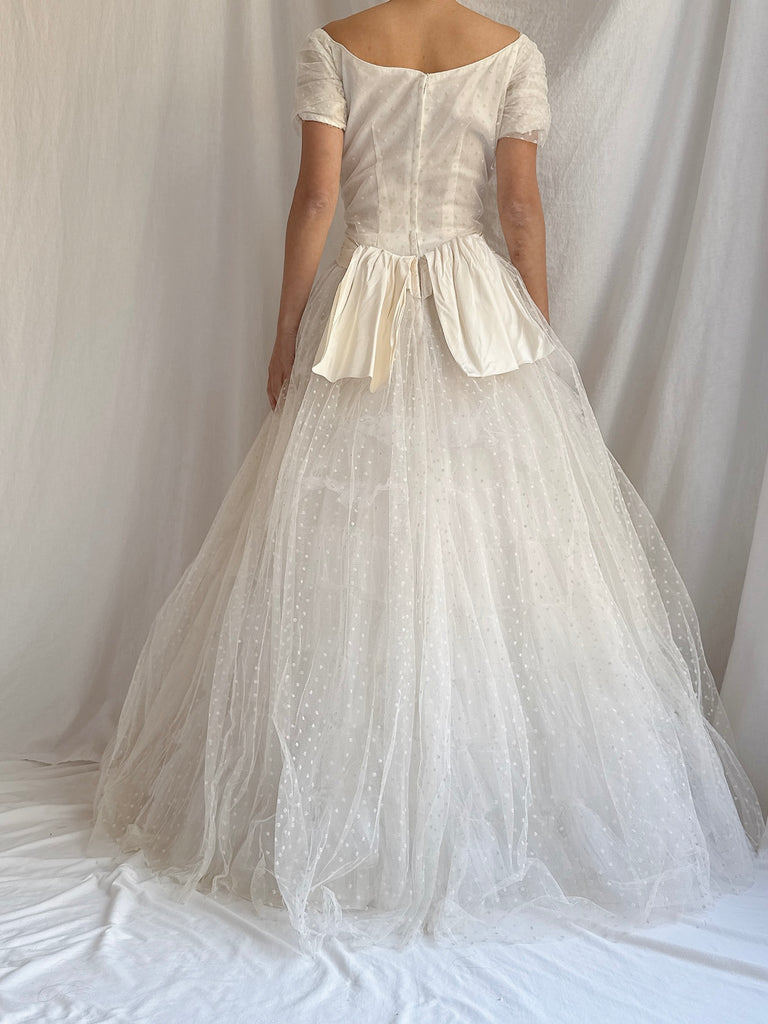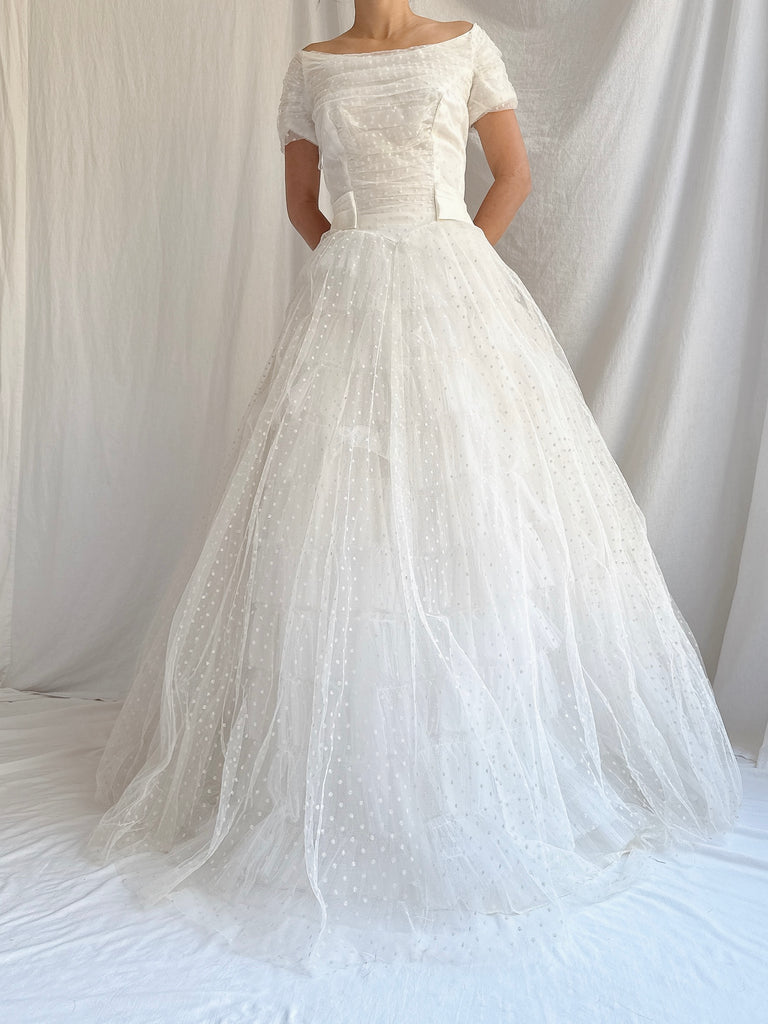 1950s Swiss Dot Tulle Gown - S