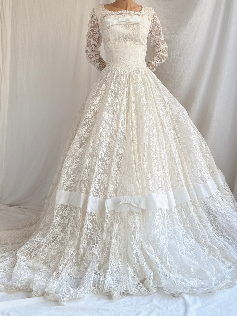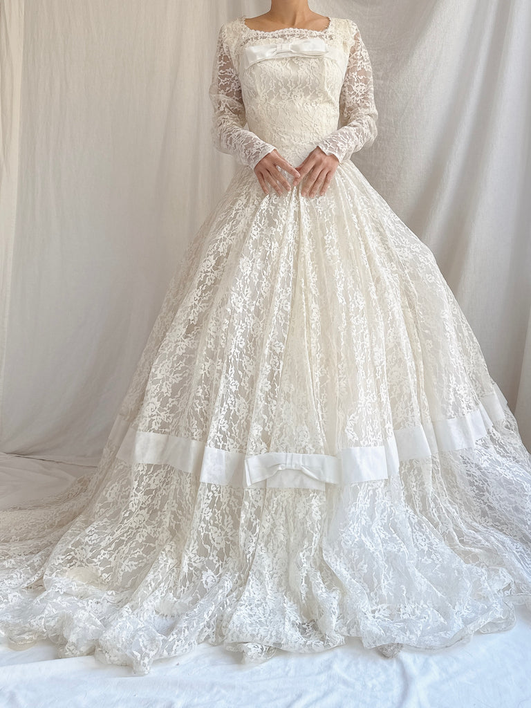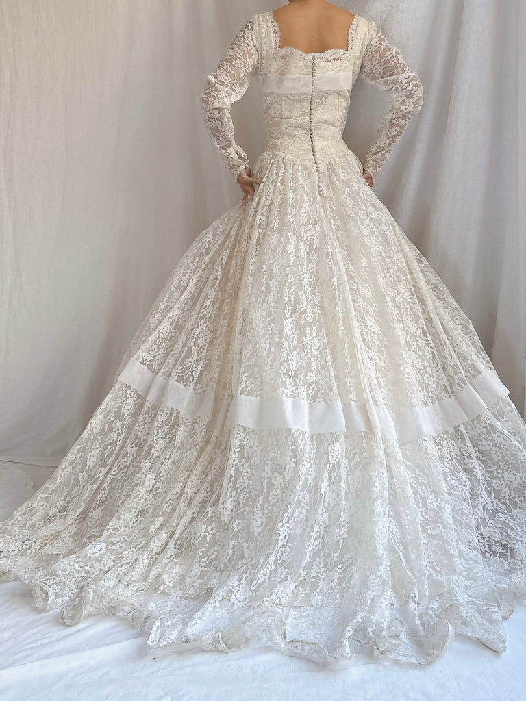 • DESCRIPTION: 1950s Lace Long Sleeve Gown - S.