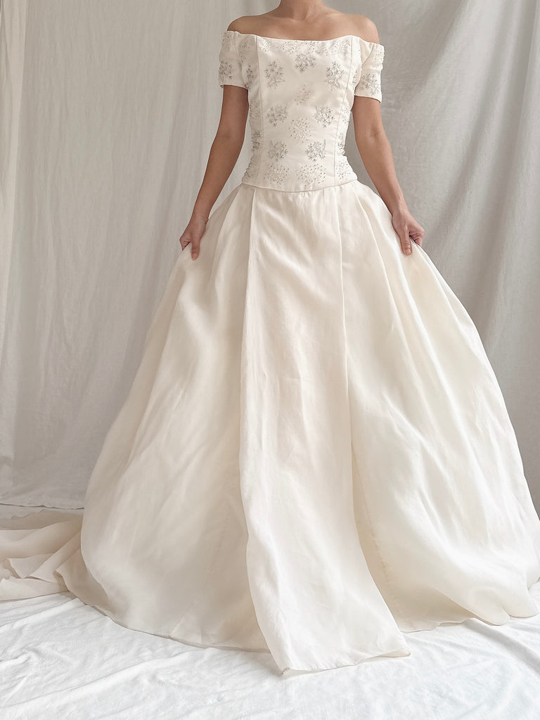 • DESCRIPTION: 1990s Monique Llhuilier Silk Organza Gown - M