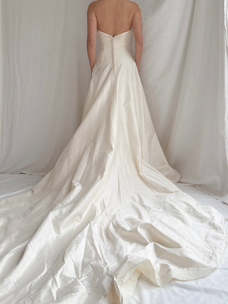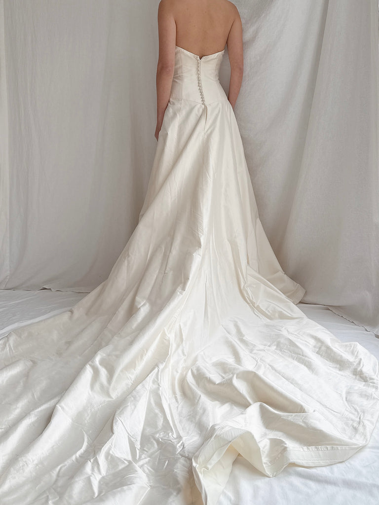 • DESCRIPTION: Vintage Silk Dupioni Strapless Gown - S/6