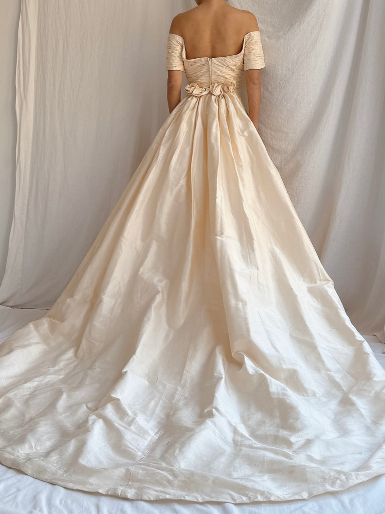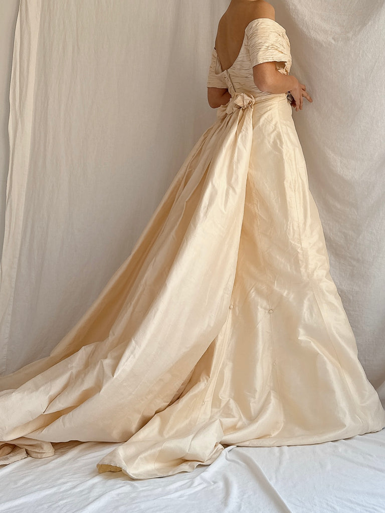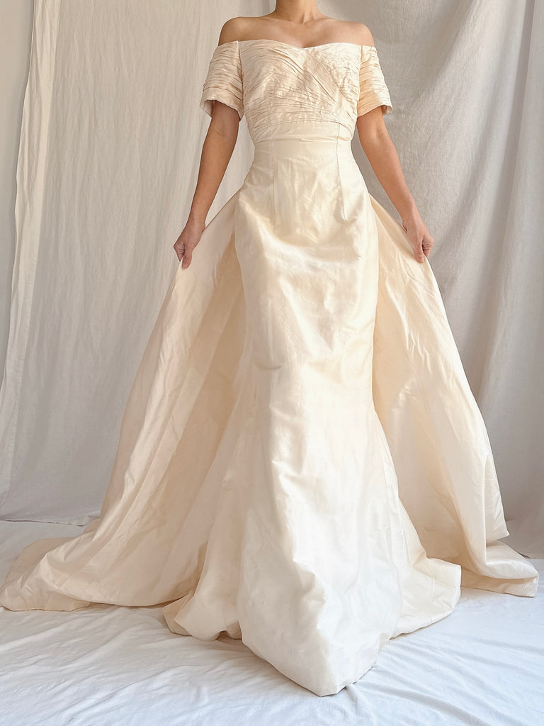 Vintage Silk 2-Piece Off-the-Shoulder Gown - S