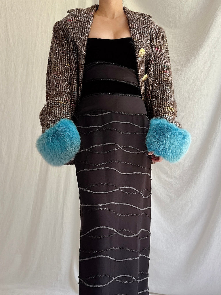 • DESCRIPTION: Vintage Tweed and Fox Fur Trim Jacket - M