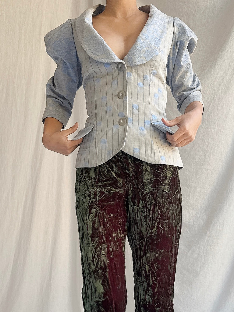 • DESCRIPTION: Vintage Blue Puff Sleeve Top - S