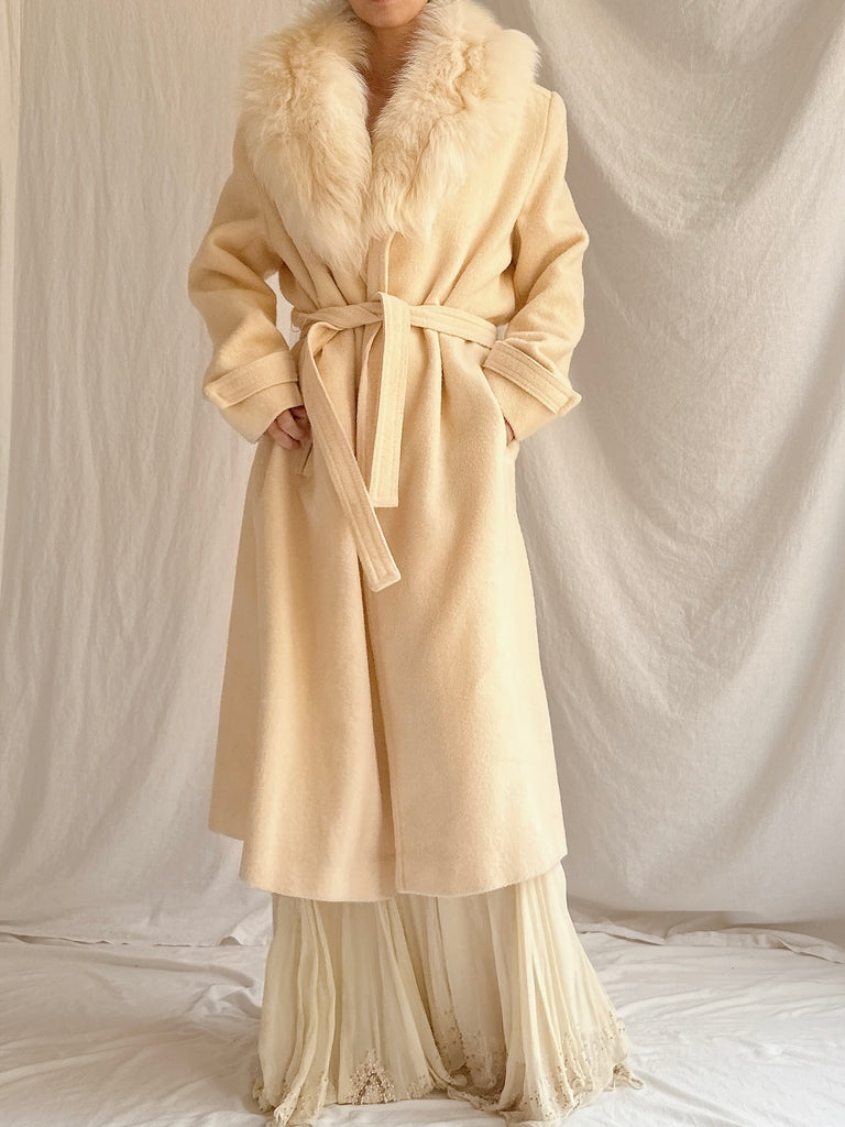 • DESCRIPTION: Vintage Wool and Fox Fur Coat - M