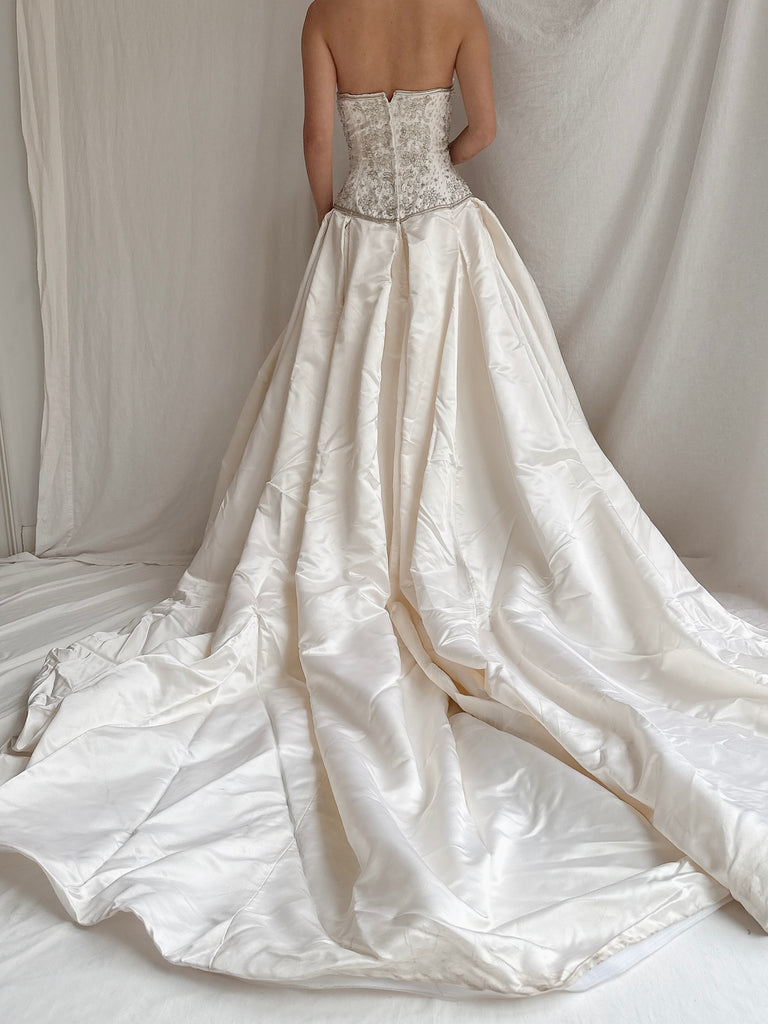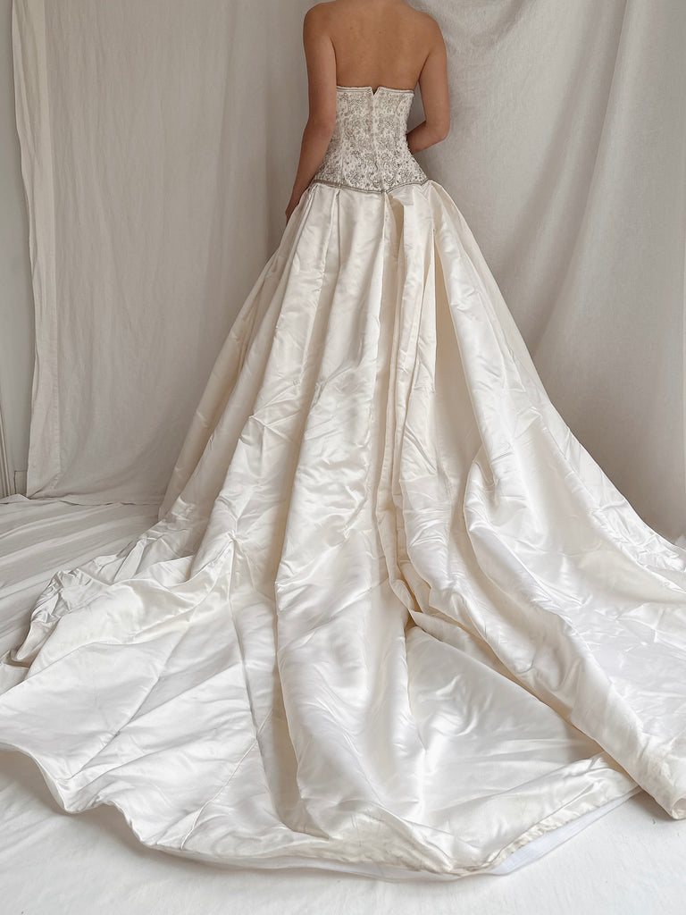 • DESCRIPTION: Vintage Silk Strapless Gown - M