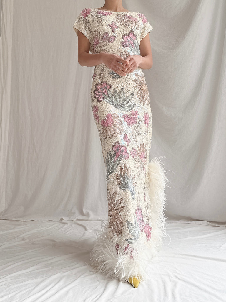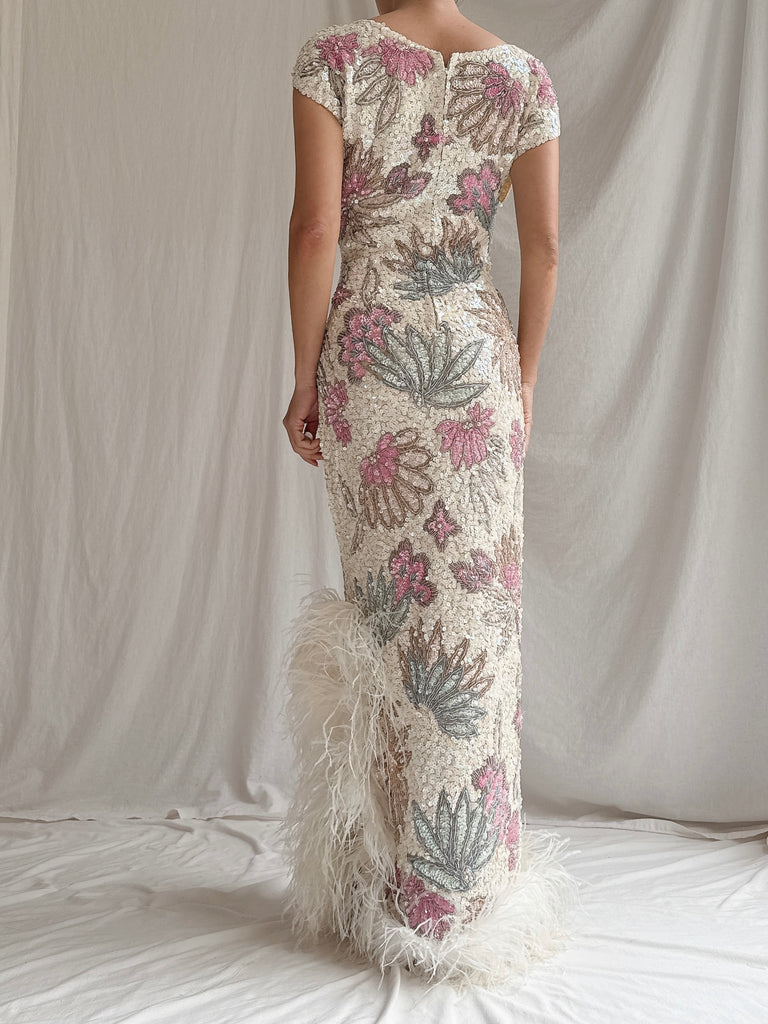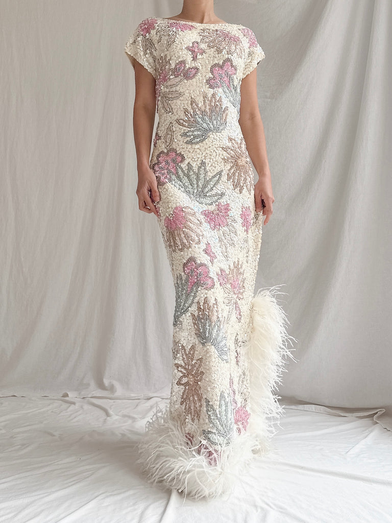 1960s Wool Beaded Gown - M