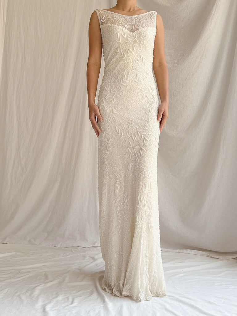 Vintage Ivory Silk Beaded Gown - S