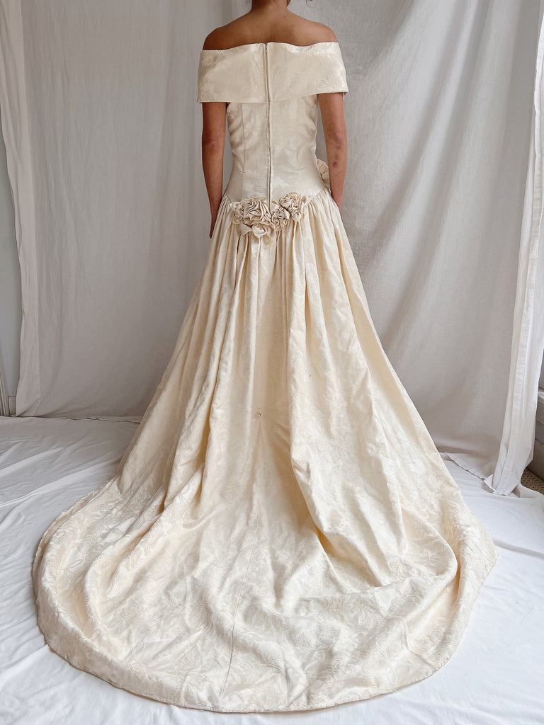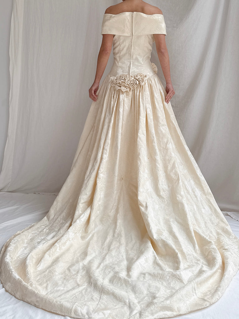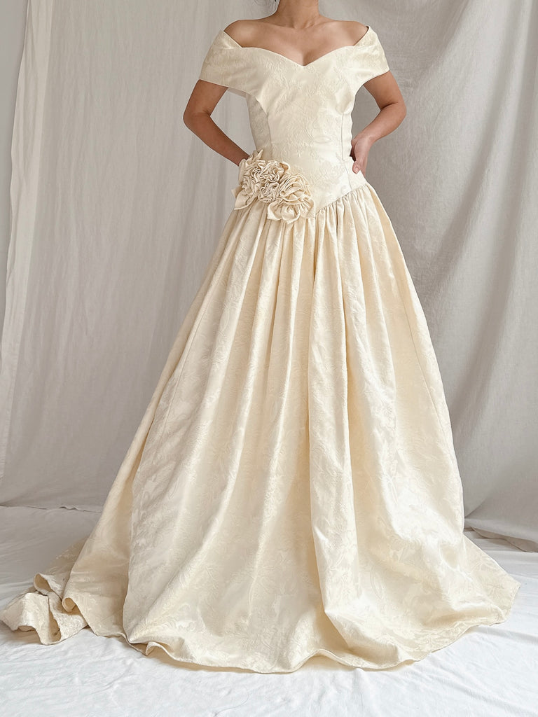 • DESCRIPTION: Vintage Jacquard Rosette Gown - S/M