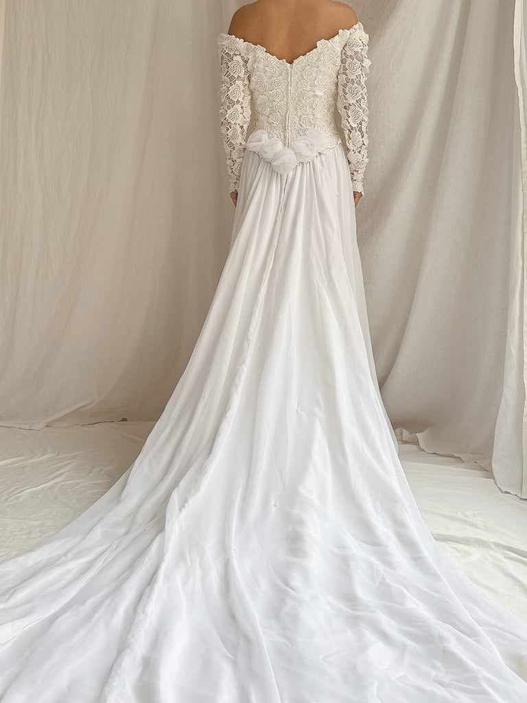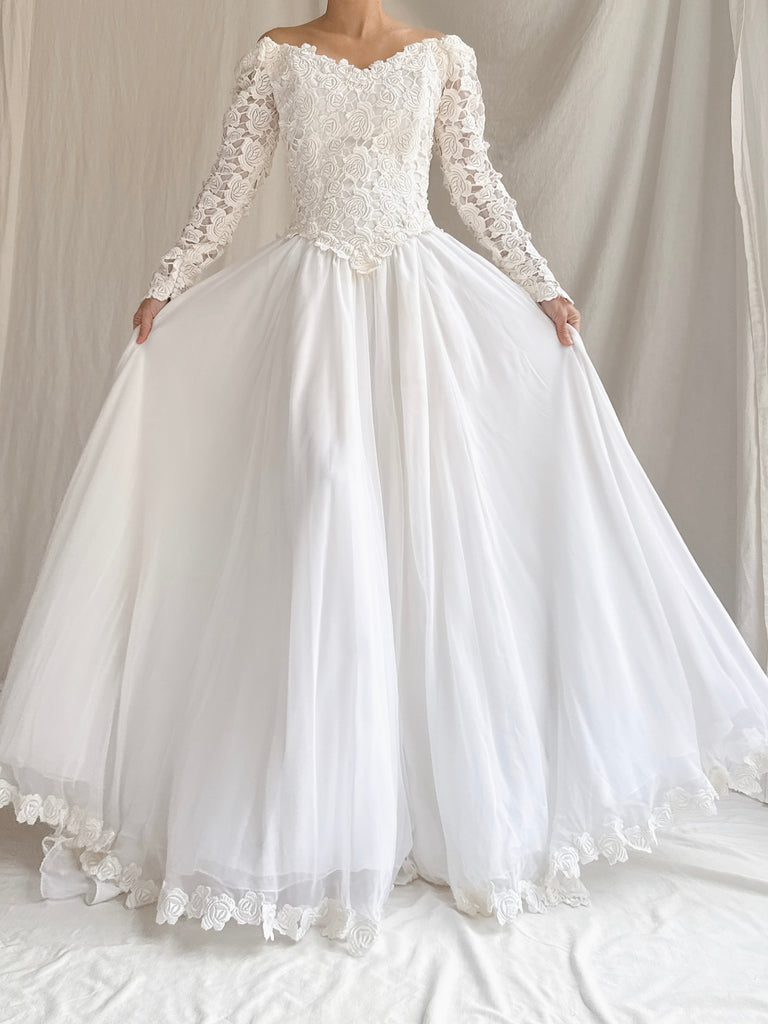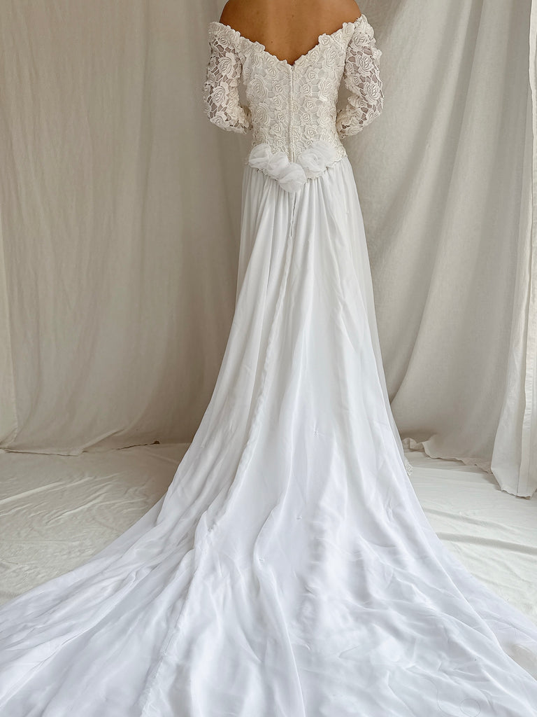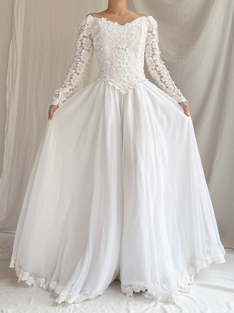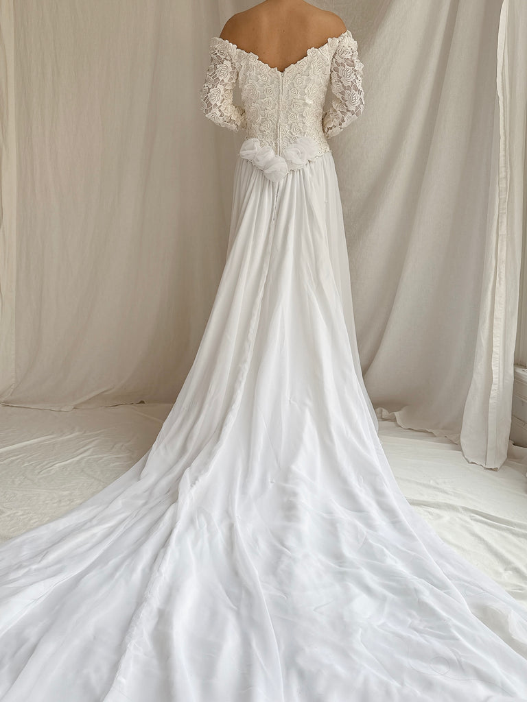 • DESCRIPTION: 1980s Chiffon Embroidered Gown - S