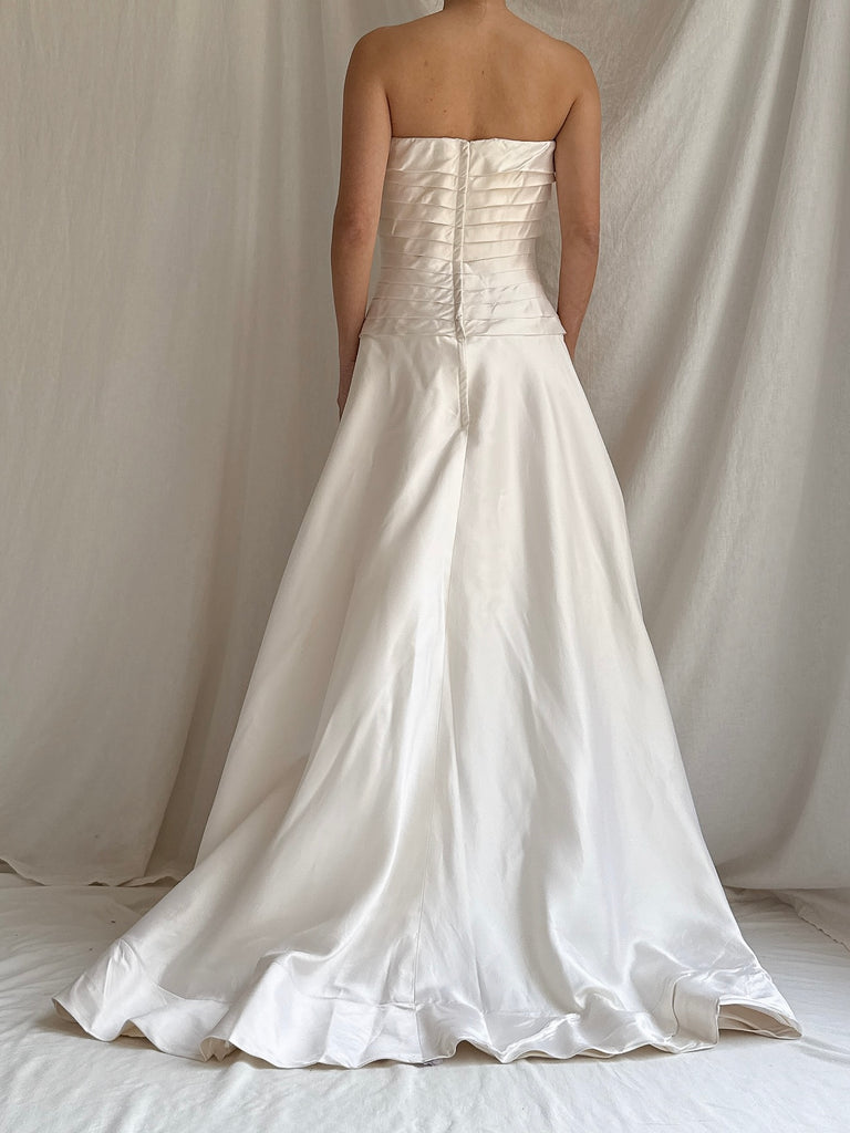 Vintage Silk Pleated Strapless Dress - M