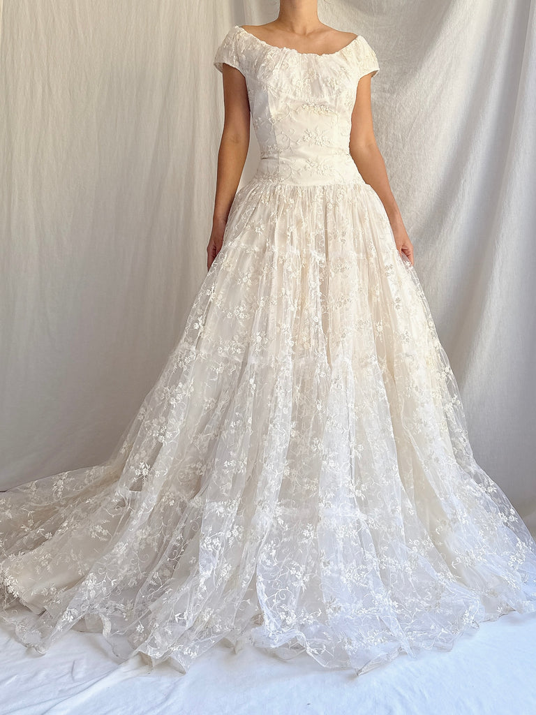 • DESCRIPTION: 1950s Embroidered Lace Dress - S