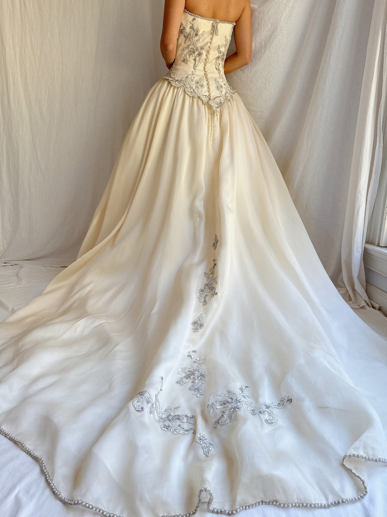 • DESCRIPTION: Vintage Silk Organza Embroidered Gown - XS/2